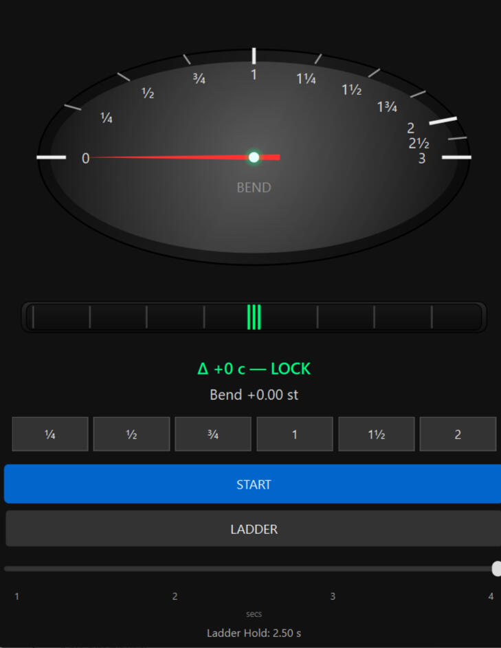 Includes a ladder mode for practicing ascending and descending bend targets with adjustable hold time.